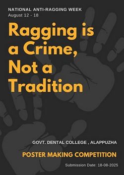 Activities on 25th June 2025:An awareness programme was held at the Conference Hall of Government Dental College, Alappuzha, from 12 PM to 1 PM. Mr. Ashoka Kumar S., Deputy Excise Commissioner, spoke on the harmful effects of drug abuse and the need for early prevention. Students and faculty actively participated. IEC material for TCC patients was jointly unveiled by Dr. Anupam Kumar T. V., Principal, and the Deputy Commissioner.